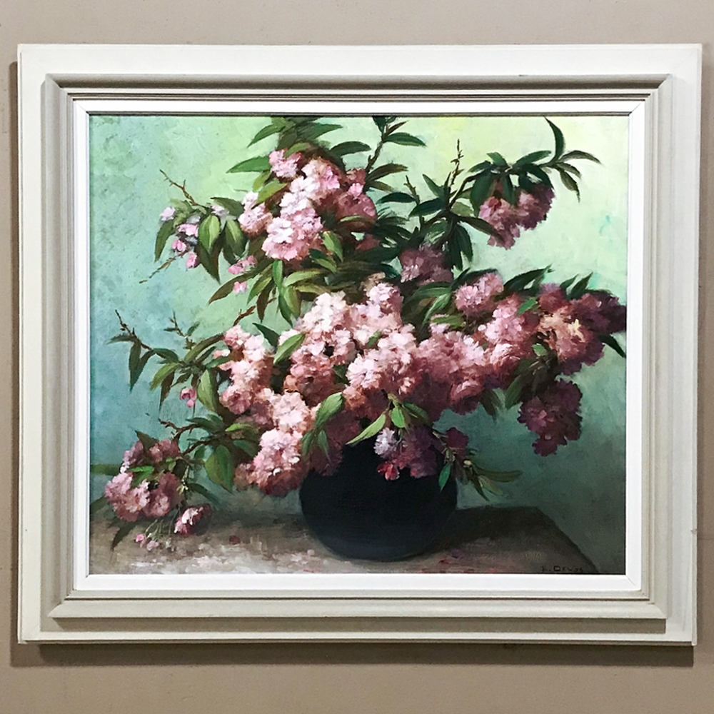 Antique Framed Oil Painting On Canvas Floral Still Life By E Devos
